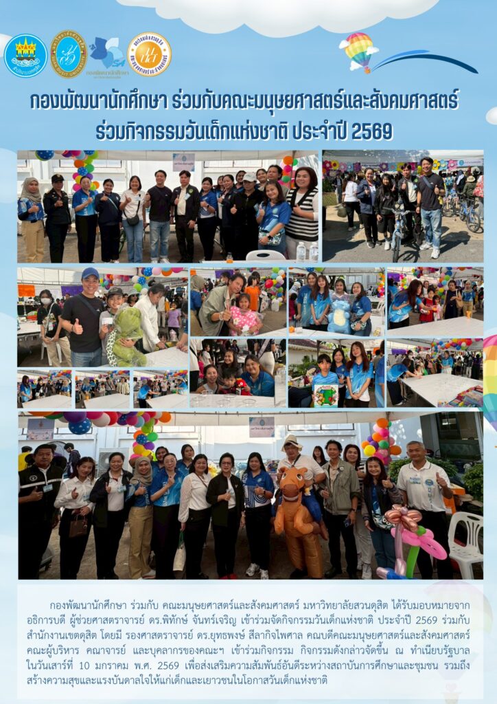 กองพัฒนานักศึกษา ร่วมกับ คณะมนุษยศาสตร์และสังคมศาสตร์ ร่วมจัดกิจกรรมวันเด็กแห่งชาติ ประจำปี 2569