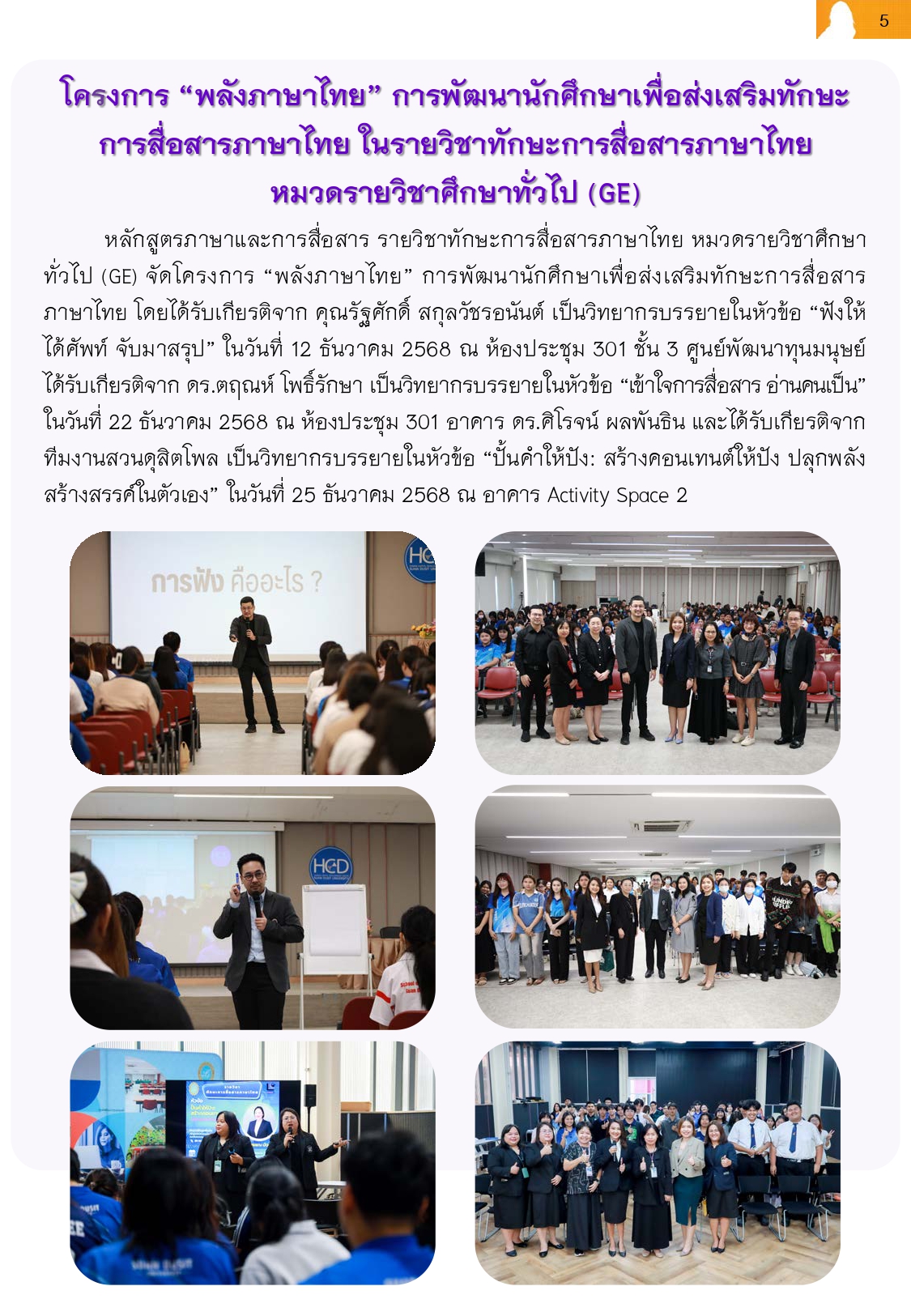 ข่าวกิจกรรมนักศึกษา | บทความ | มุมกิจกรรม | มุมข่าวบุคลากร | มุมข่าวประกันคุณภาพ | มุมข่าวประชุม | มุมข่าววิจัย | มุมข่าวสารสังคมมนุษย์