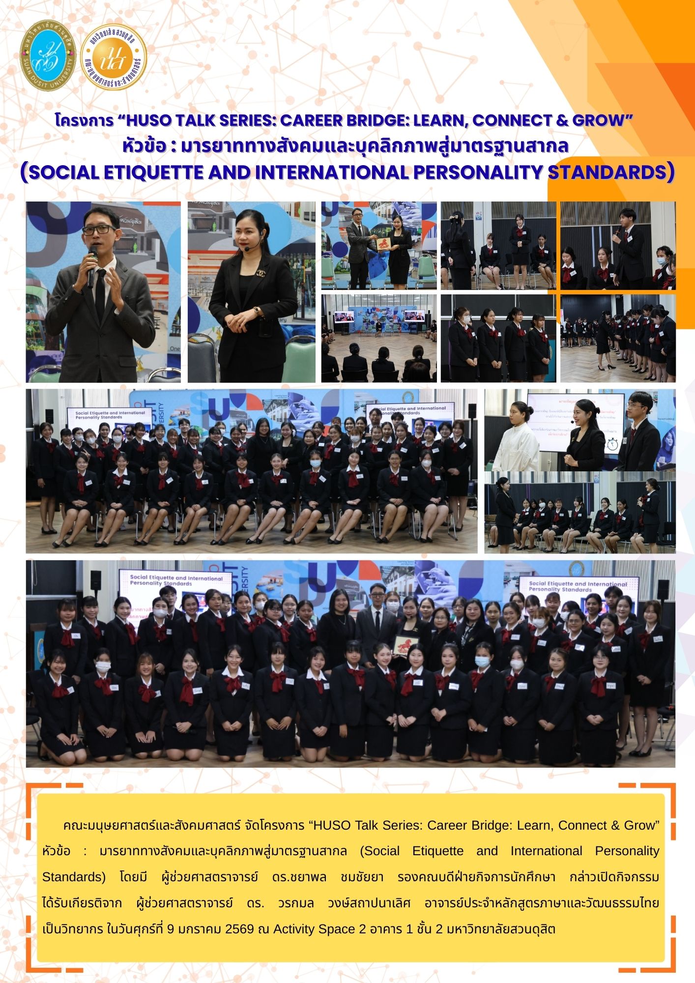 โครงการ “HUSO Talk Series: Career Bridge: Learn, Connect & Grow” หัวข้อ : มารยาททางสังคมและบุคลิกภาพสู่มาตรฐานสากล (Social Etiquette and International Personality Standards)